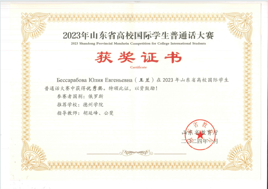 我院留学生在“用英语讲中国故事”比赛、中华经典诵读大赛山东省赛、山东省高校国际学生普通话大赛、德州学院汉字书写比赛等赛事中,脱颖而出,荣获多个奖项,为中国文化传播贡献了自己的力量。