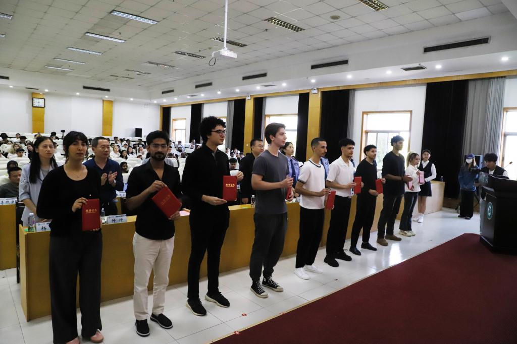 大会对在校期间表现优异的留学生进行了表彰,鼓励大家勤奋学习、积极进取,发挥模范带头作用。在交流发言环节,巴基斯坦籍在校生代表贾立(2024级计算机科学与技术专业本科生)与越南籍新生代表桥桥(2025级语言生)分别发言,分享了在德州学院的学习体会与未来规划,表达了对校园生活的热爱与期待。外语学院教师宋伟作为教师代表发言,勉励留学生们珍惜时光、勤学善思,积极融入跨文化交流与融合的校园氛围。