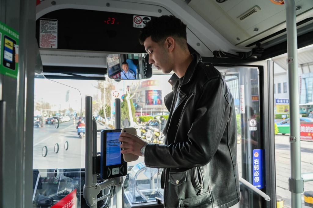 留学生们乘坐公交车来到了此次活动的第一站,长河公园。正值初春,公园的各个角落都充满生机。在这里,留学生们对公园的各类自然和人文景观赞不绝口,他们表示,很开心能在离学校不远的地方有这样一个令人身心放松的场所。在长河公园的红色驿站,讲解员向留学生介绍了德州市目前多元化的出行场景、各类支付服务建设现状以及未来规划。讲解了境外来华人员支付政策及移动支付相关知识,并为留学生发放双语《境外来华人员数字支付指南》手册。