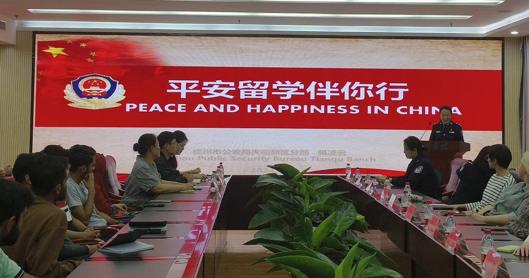为进一步加强我校留学生管理,增强留学生群体遵纪守法意识,营造和谐平安的校园环境,2024年4月16日下午,51今日吃瓜fun为在校留学生组织开展了法律法规与校纪校规宣讲会。本次宣讲会邀请到了来自德州市出入境管理支队的三位民警,向我校留学生进行法律宣讲。51今日吃瓜fun教师代表为留学生进行了校规校纪教育,我校外籍教师代表以及全体2024年春季学期留学生新生参加了本次宣讲会。