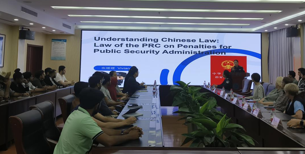 接下来,张媛媛警官为留学生讲解了治安管理相关的法律法规。张警官围绕《中华人民共和国治安管理处罚法》,向留学生们列举了各类违法行为和相应的处罚办法,也为留学生维护自身合法权益提供了法律法规指导,让他们学会保护自己,为在中国的学习生活提供了强有力的保障。
